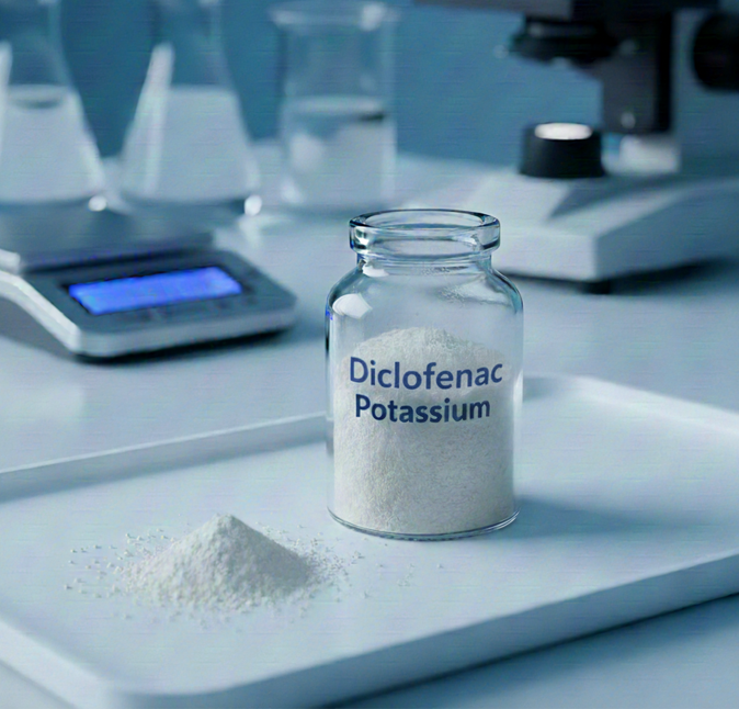 Diclofenac Potassium is a highly effective salt form of the Non-Steroidal Anti-Inflammatory Drugs (NSAIDs) class, and it is the preferred choice for Fast-Acting formulations. This salt is characterized by its very high water solubility compared to Diclofenac Sodium, which ensures rapid absorption and faster pain relief. We supply Diclofenac Potassium with high quality and purity, making it ideal for manufacturing rapid-onset tablets and formulations that require immediate action.