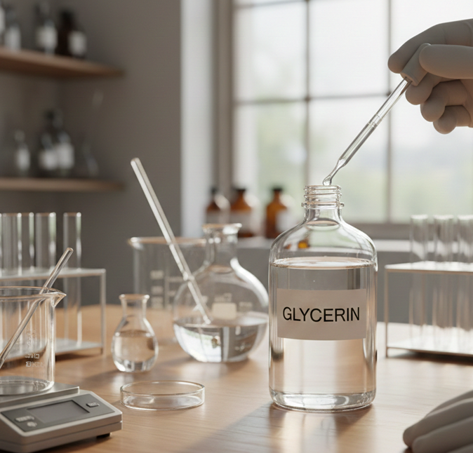 Glycerin, also known as Glycerol, is a clear, colorless, odorless, sweet-tasting, liquid Trihydric Alcohol (a compound with three hydroxyl groups). It is a natural byproduct of the soap manufacturing process or the hydrolysis of fats. Glycerin is one of the most important excipients in the pharmaceutical and cosmetic industries, primarily functioning as a Solvent, a Potent Humectant (preventing products from drying out), and an Emollient in topical formulations. It is a key agent in improving the texture, palatability, and stability of solutions and semi-solid products.