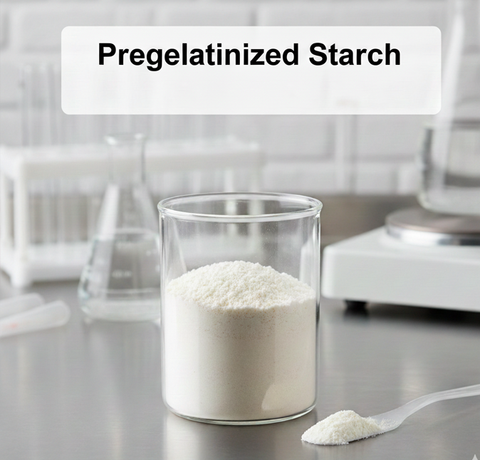 Pregelatinized Starch (PGS) is a Multifunctional Pharmaceutical Excipient typically derived from corn or potato starch, which has been partially processed physically and chemically. This excipient offers simultaneous functional properties: it serves as a Binder, a Disintegrant, and a Filler (Diluent). PGS is ideal for formulations utilizing Direct Compression or Wet Granulation processes, simplifying the formulation complexity and reducing the number of excipients required.
