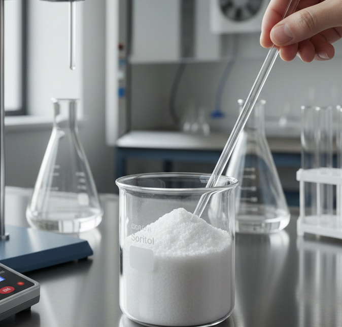 Sorbitol is a polyhydric sugar alcohol, typically obtained by the reduction of glucose. It is one of the most important multifunctional excipients in the pharmaceutical and nutritional industries, primarily used as a Sweetener (non-cariogenic), a Humectant to prevent formulations from drying out, and a Diluent in compressed tablets. Sorbitol is also known for its ability to act as a mild Laxative at higher doses. It is available either as a crystalline powder or a 70% aqueous solution (Sorbitol Solution).